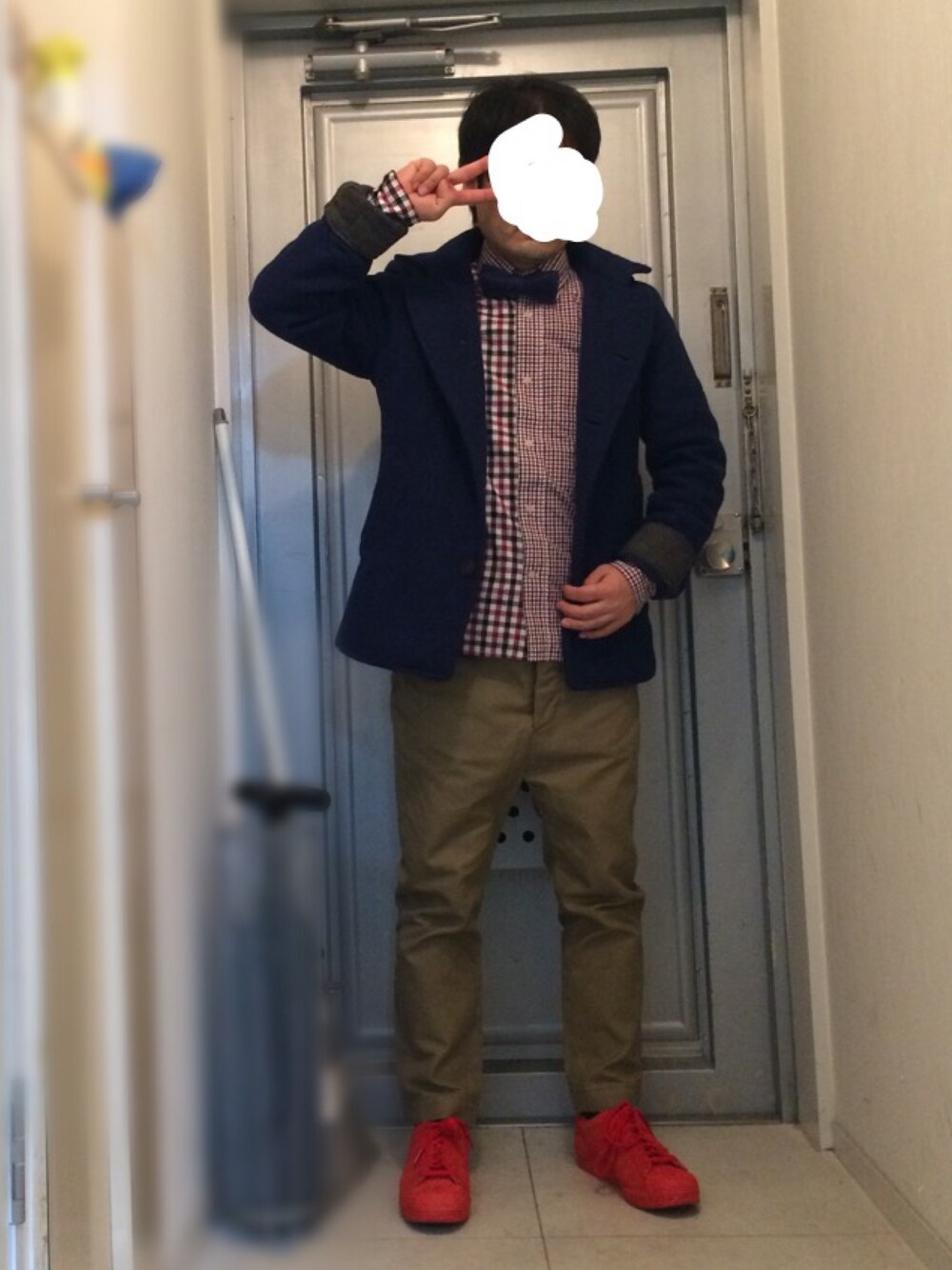 今日は買い物行ってきた。年明けセールからほぼ毎日のように行ってたが仕事だったからゆっくり見れなかったので。 アウターと蝶ネクタイを青で合わせてシャツとスニーカーは赤で合わせました!