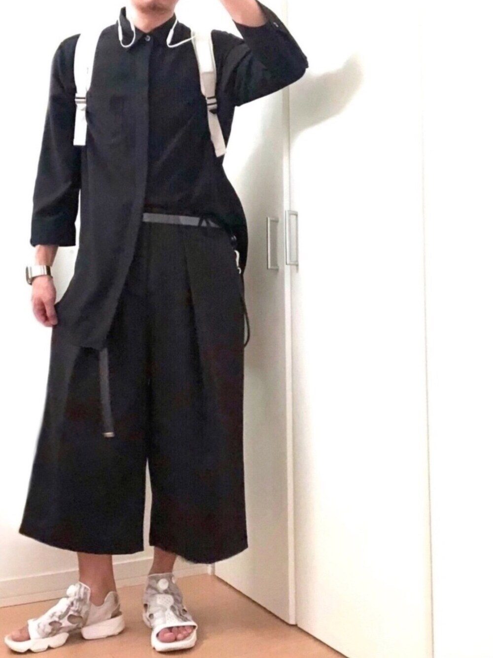 暑苦しいので ブラックコーデに ホワイト小物と クリアベルトで 涼しげに ↓ホワイト↓ レザーリュック ポンプフューリーサンダル BeatsX
