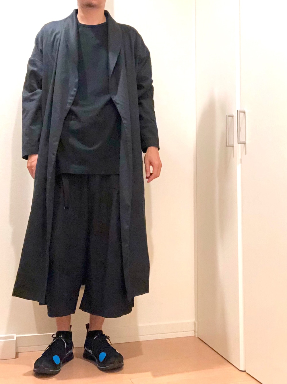 そろそろ羽織の季節! ロング丈のカットソーに ロング丈のガウンの オールブラックコーデです。