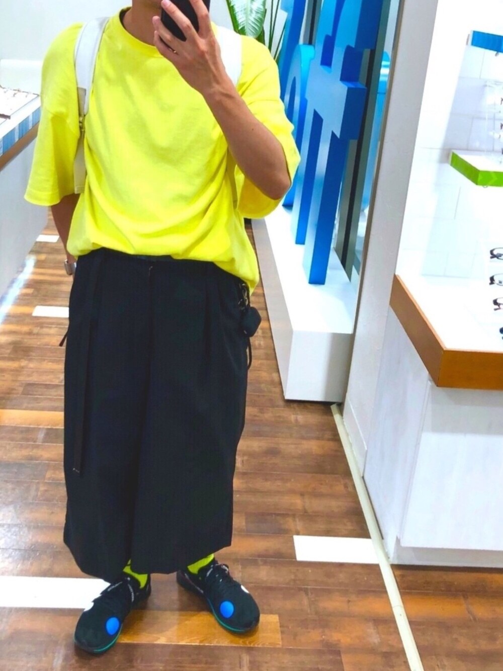 アップし忘れてた夏コーデw Tシャツとソックスをネオンイエローにしてスポーティーに。