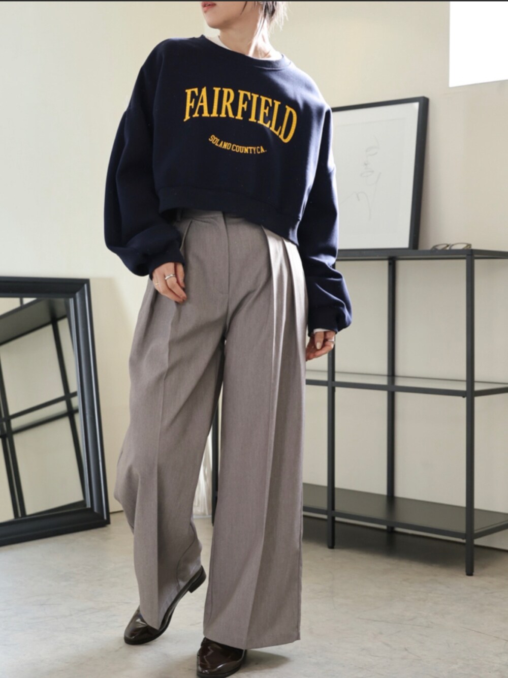 uleula_officialのスウェット「カレッジロゴスウェットプルオーバー/ボリュームスリーブトレーナー」を使ったコーディネート