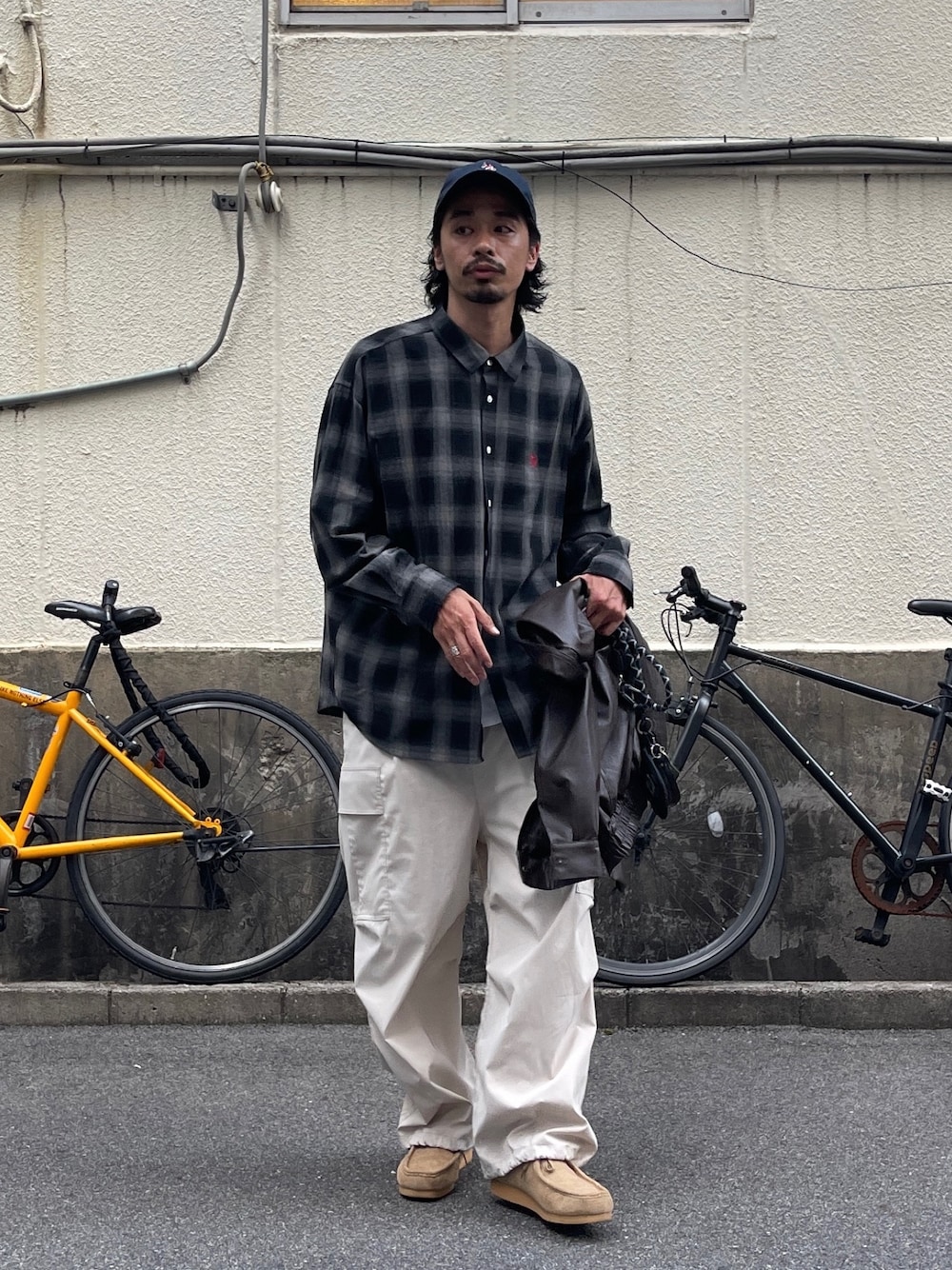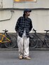 オンブレーチェックはストリートに着こなすのがおすすめのスタイリング! 今年はスウェードのモカシンブーツで合わせて少し大人なスタイルに🪮