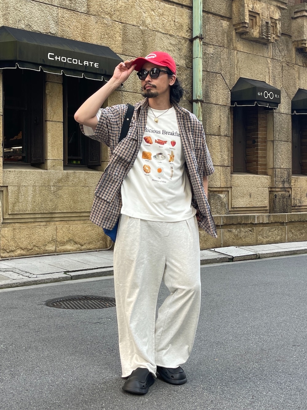 スウェットパンツにチェックシャツの王道コーデ! キャップで差し色を加えてみました👋🏻