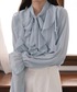 フリルやリボンが大きめにデザインされている甘めなブラウスは ゆったりとしたサイズ感で、パンツにもスカートにも合う優秀アイテム◎ また、オフィスコーデにも使えるのでデイリーで使えます!