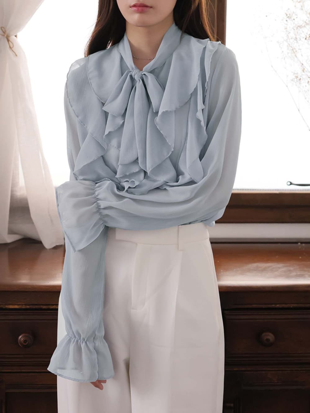 Ulysses(Ulysses)のシャツ/ブラウス「フリルリボンシアーブラウス」を使ったコーディネート