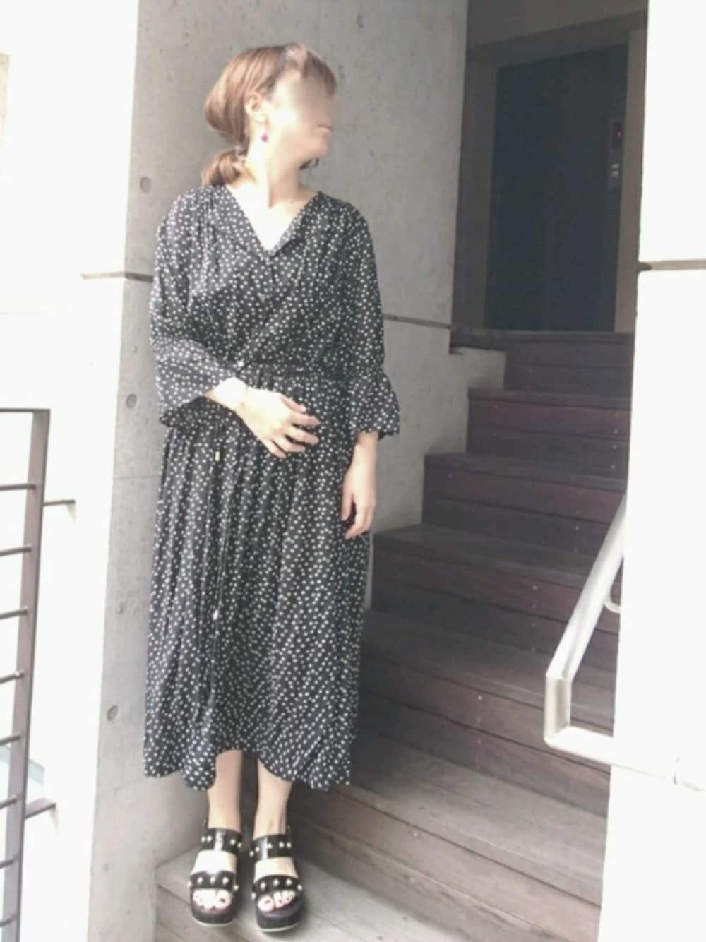 ドット柄の開襟シャツワンピース。いつもより少し女らしく。