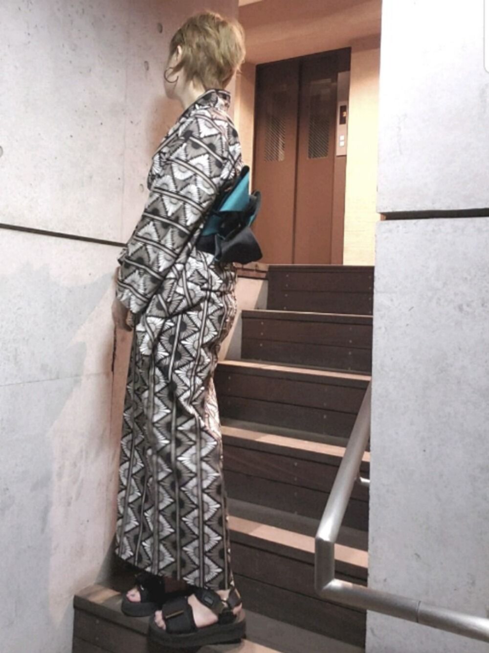 umの浴衣「幾何学柄浴衣」を使ったコーディネート