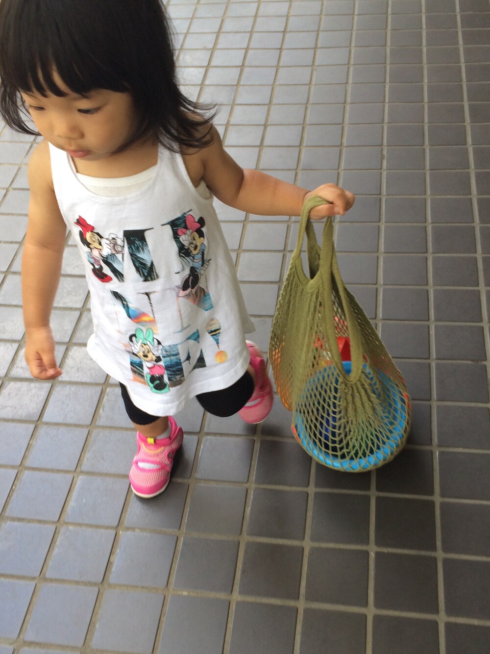 まだ6月ですが暑すぎて真夏スタイルの娘 自分でお砂場セットを持ちたがるので、ズルズル引きずりながら公園へ^_^;