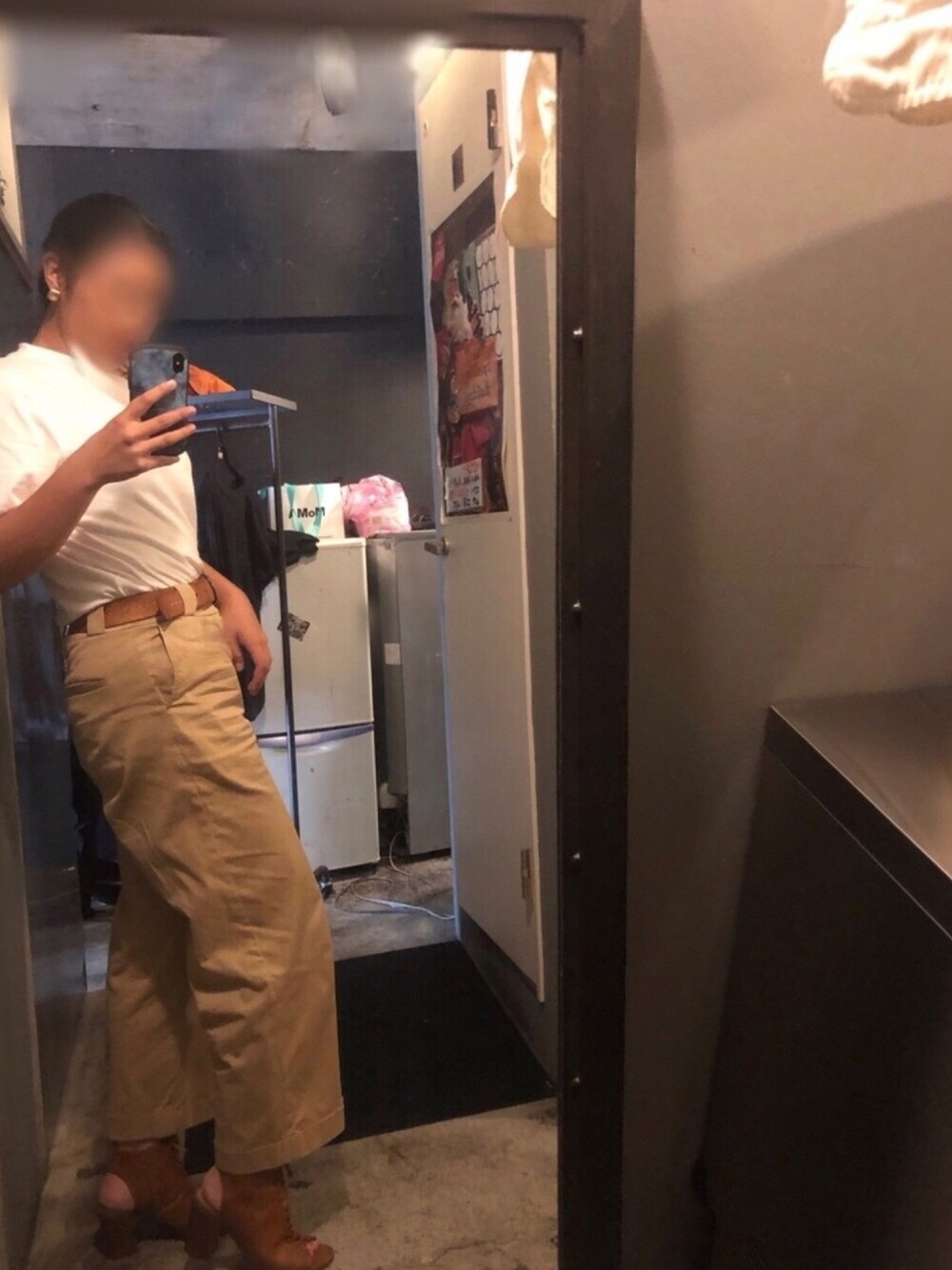 髪型はピシッと固めて後ろでお団子 気分はCAさんの休日() ・SENSE OF PLACEのTシャツ良き◎どのコーデにも合う ・本当はスカーフも首巻きたかったけど、この髪型でそれをすると固すぎるから今日はボツ ・気取って立ってみる