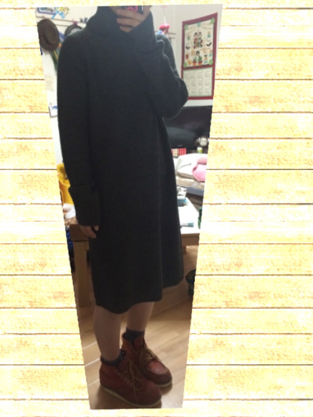 一目惚れ♡ タートルネックのニットワンピ♡ 足元でちょっとはずしてみました(^∇^) お気に入り⚐⚑⚐