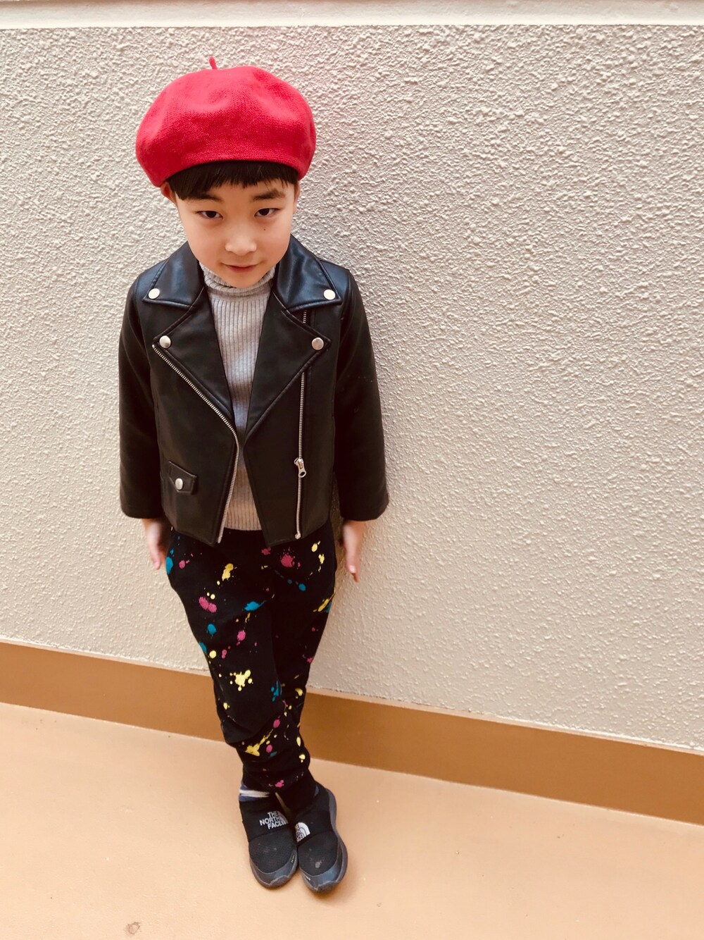 大好きな赤ベレーにやんちゃ系コーデ❤️ ライダースはそろそろサイズアウト…。 愛用してただけに着れなくなるのは寂しいなぁ。。