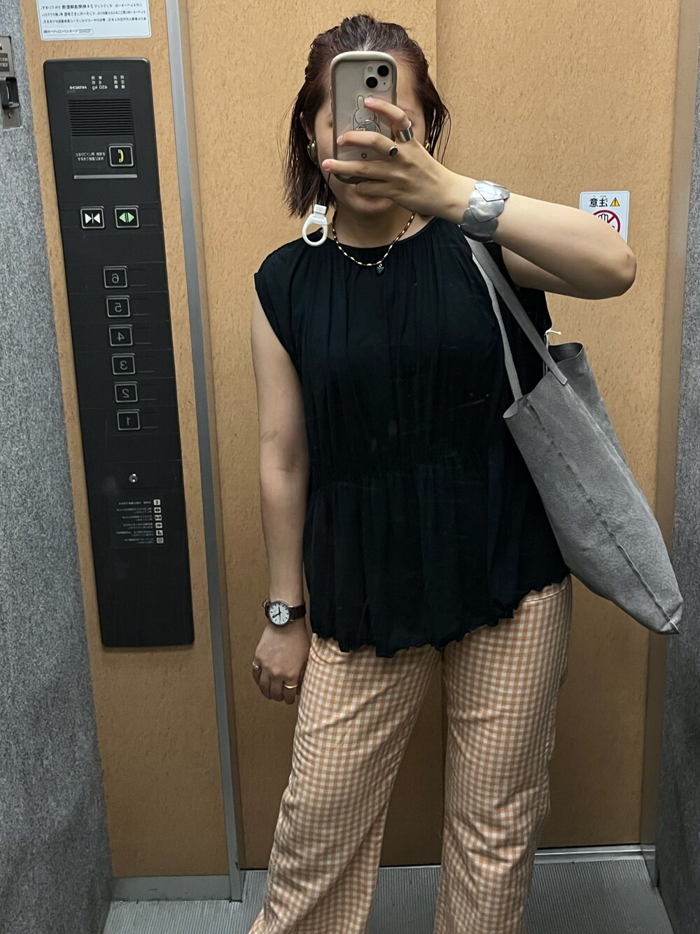 ウエストギャザーのカットソー!涼しい〜〜ギンガムチェックでキュートに🧡夏らしく🧡🧡