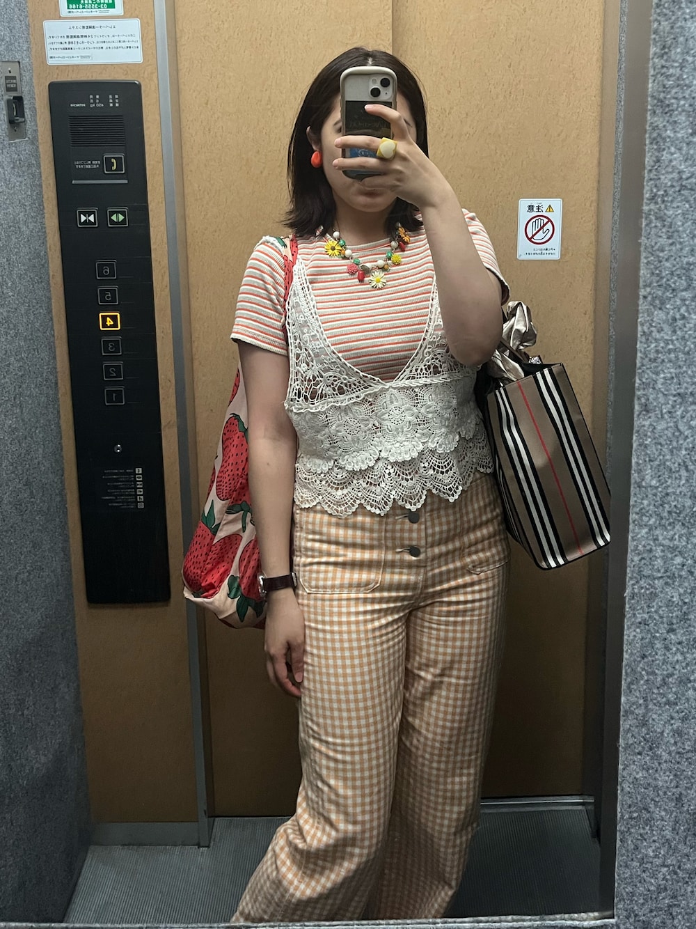 ムッチムチですな。痩せよ。 オレンジ合わせにレースを重ねて、アクセサリーでデコった感じ。