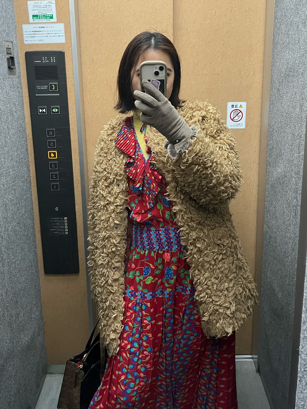 新年明けましておめでとうなコーディネート。赤いワンピースでめでたい感じ。ナインチェちゃんは新年早々に買いに行きました。可愛いすぎーーー!