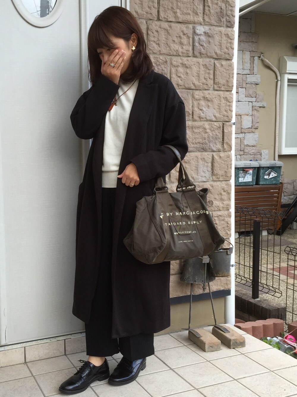 カバンの持ち方、しくじりました。 ハンドメイドのピアスがあまり見えなく残念。 お気に入りの☆ピアスに自分でパールの キャッチを作りました⑅◡̈*