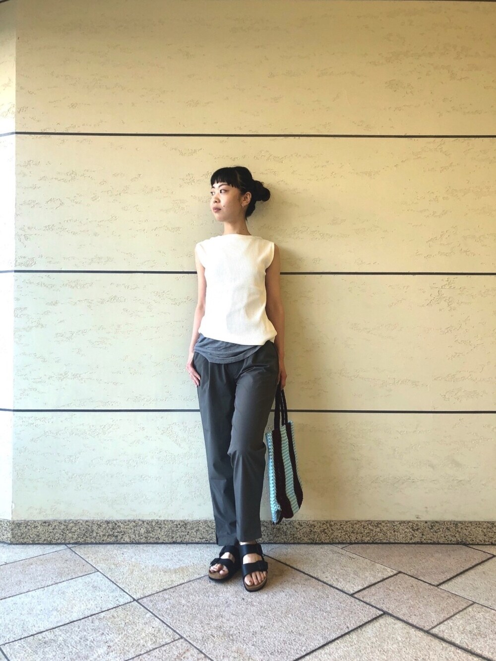 うめのTシャツ/カットソー「針抜きノースリーブカットソー」を使ったコーディネート