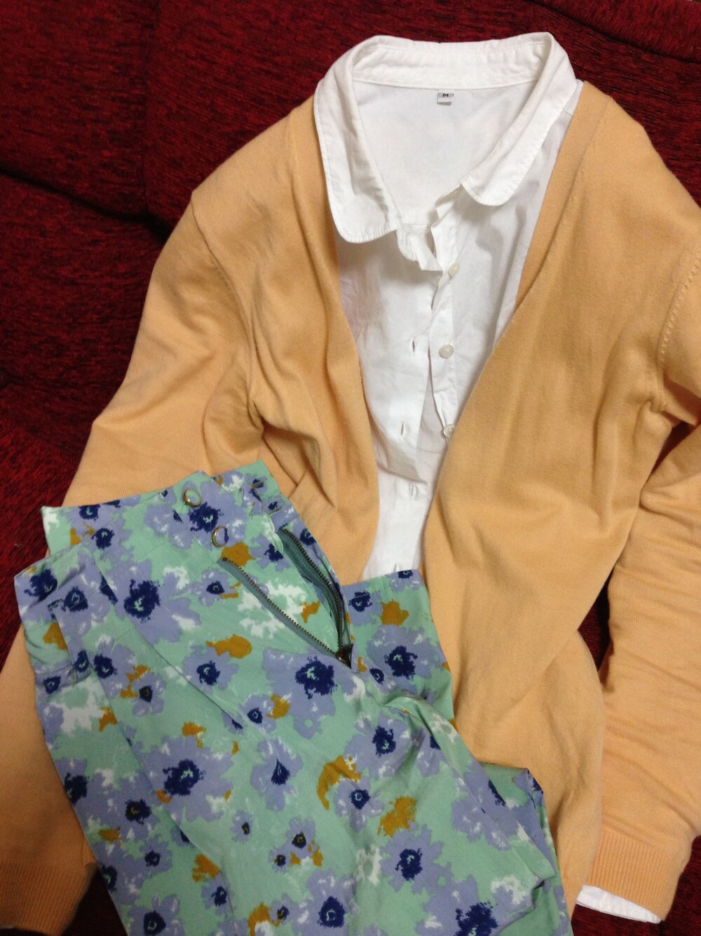 カーディガン UNIQLO 白シャツ 無印良品 柄パンツ DISCOAT 半袖の人いますね ちょっと日陰は寒いです 今日は掃除したり、ご飯作って ほんで書くもん書いて オートバックスでオイル交換 ヨガ行くつもりでしたが また後日ですね