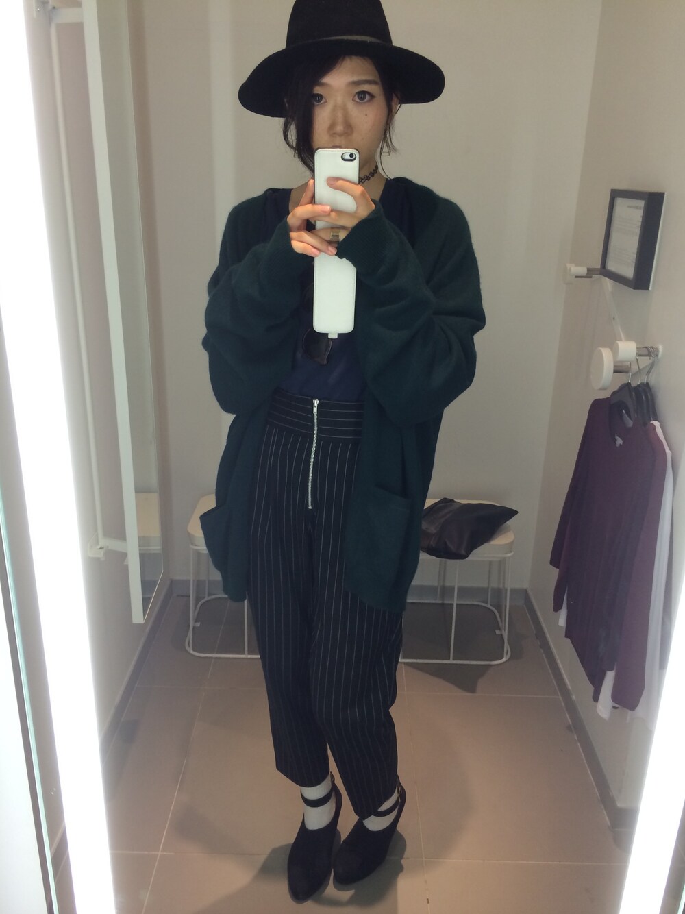 初投稿です。 基本的にシンプルが好きなので シンプルコーデをUPしていきたいと思います! 秋色取り入れました。 緑のカーディガンは、古着屋のメンズで購入。 ロング丈が目当てだったのでメンズにしました。 ストライプパンツは、サロペの紐が取り外し可能です。ハイウエストで足長効果! JEANASiSは、本当に可愛いですね。