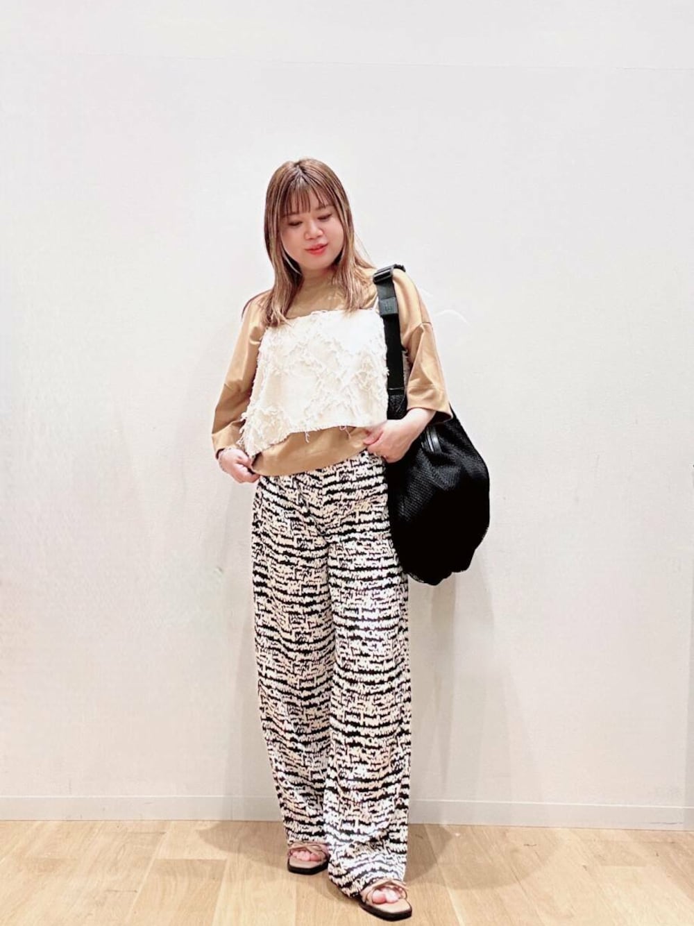 カットソーはウエストインせずに腰回りがスッキリ見える着丈です✨🛸 カットソー生地なので自宅でお洗濯できます🙆♀️⭕️ キャミソールはかぐれ。 色んなトップスと相性⭕️ ボトムはプリント柄がコーデの主役になり夏なのでも涼しく履けます🍍🍍 別コーデも多数投稿しています♪♪