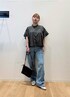 秋デニムコーデ🚲🟥♣️ SALE価格になってお得になったブラウスとデニムでコーディネートしました🔷 夏以降も着れるチャコールカラーのブラウスは軽く着心地◎ 涼しいのでヘビロテ間違いなし❣️❣️ ショート丈でコーディネートしやすいです🥰🥰 デニムは素材が綿麻で軽くシルエットが綺麗です🤩✨ 股上が深く履きやすいです🌸🌼