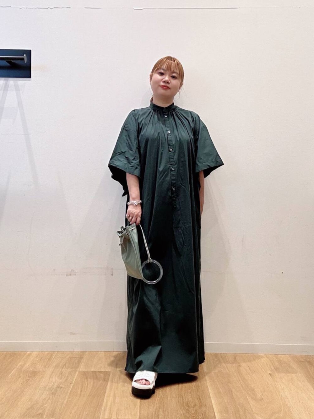 LAATO コーデ🙋♀️🙋♀️ SALE価格になってお得なワンピースと新作のバッグでコーディネートしました☺️ ワンピースは一着で着映えするグリーンカラーが◎ わたしの身長で厚底サンダル履いて大丈夫でした🤩🤩👏 バッグはアクセサリー感覚で持てるミニバッグ👜 ニュアンスカラーがLAATOらしいデザインです💛🖤🧡