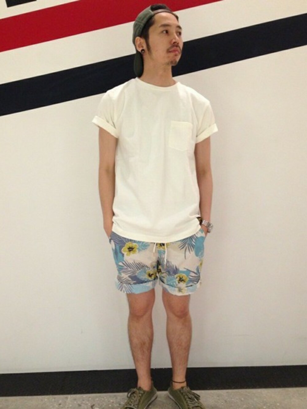 AVIREX HIDEO.Yのチノパンツ「AVIREX (アヴィレックス) フラワーショーツ 」を使ったコーディネート