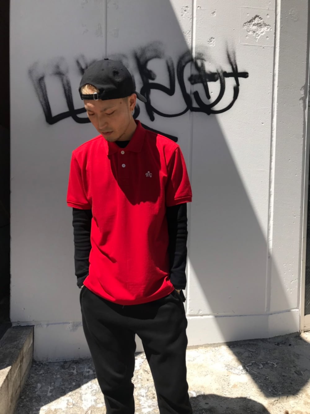 シンプルなアイテム使いで ラフな格好を意識しました! 色使いを抑え、ポロシャツを強調しています。