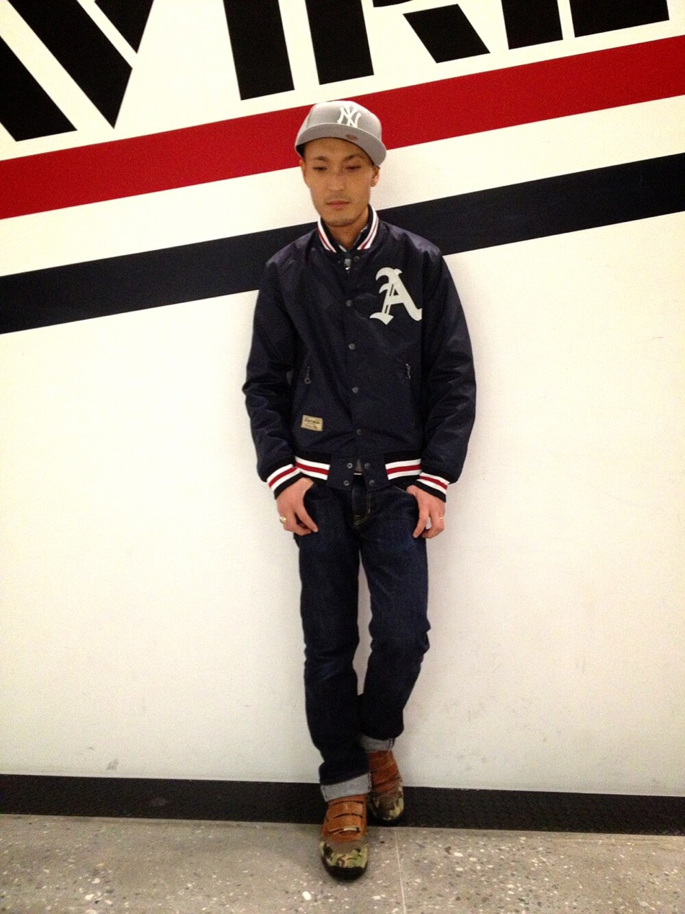 YOSHI☆LAWのスタジャン「avirex/アヴィレックス/メンズ/NYLON AWARD JACKET/ナイロン アワード ジャケット」を使ったコーディネート