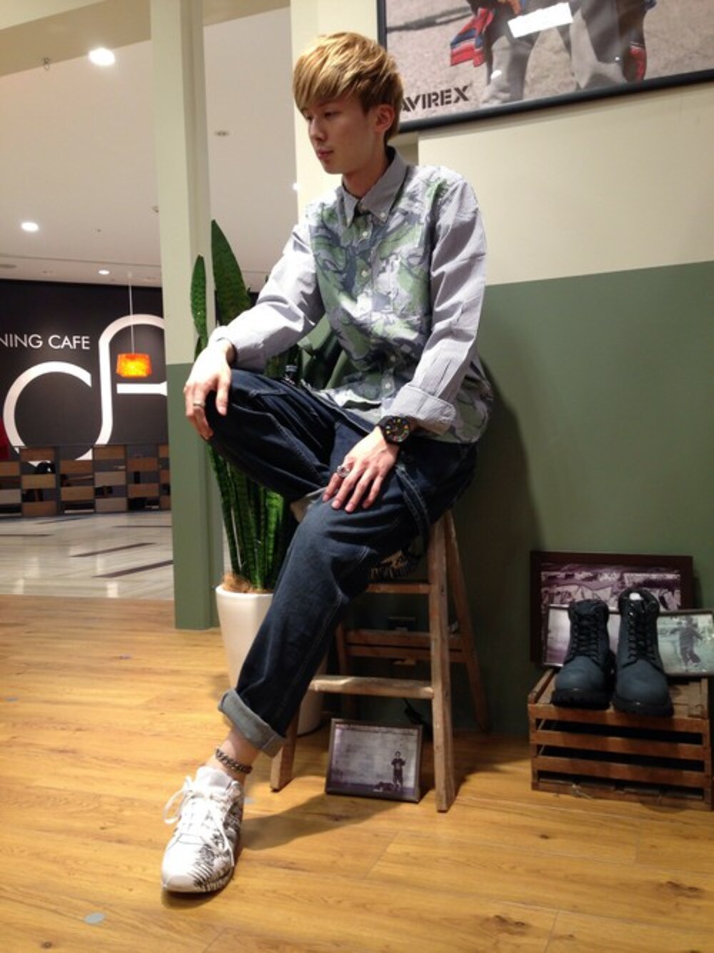 joujiのサロペット/オーバーオール「avirex/アヴィレックス/メンズ/TYPE BLUE DENIM TIGHT OVERALL/タイプブルー デニムタイト オーバーオール」を使ったコーディネート