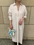 【ワンピース】 淡めのピンクカラーが素敵なシャツワンピース。 一枚で着るのはもちろんパンツをレイヤードするのもオススメです◎ 首元は開いているのでアクセを付けるとよりオシャレ度UPします!
