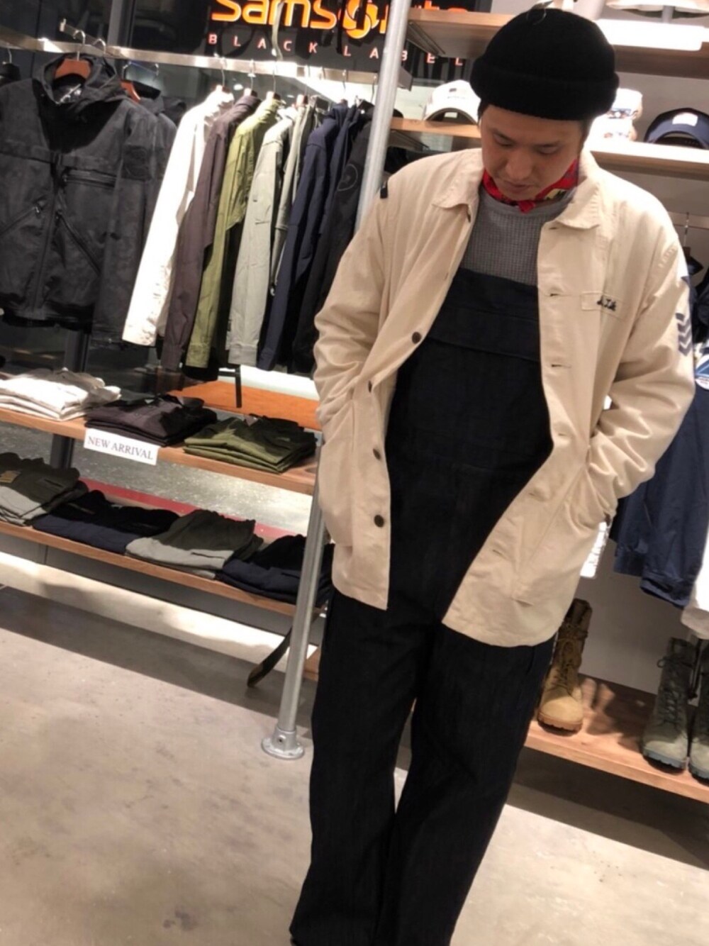 今回は僕らしくないスタイルでオーバーオールを着てみました。 サイズはLサイズですが少し大きくできているのでゆったり目で可愛くコーディネートできます。 是非店頭に見に来てください。 試着サイズ(L)