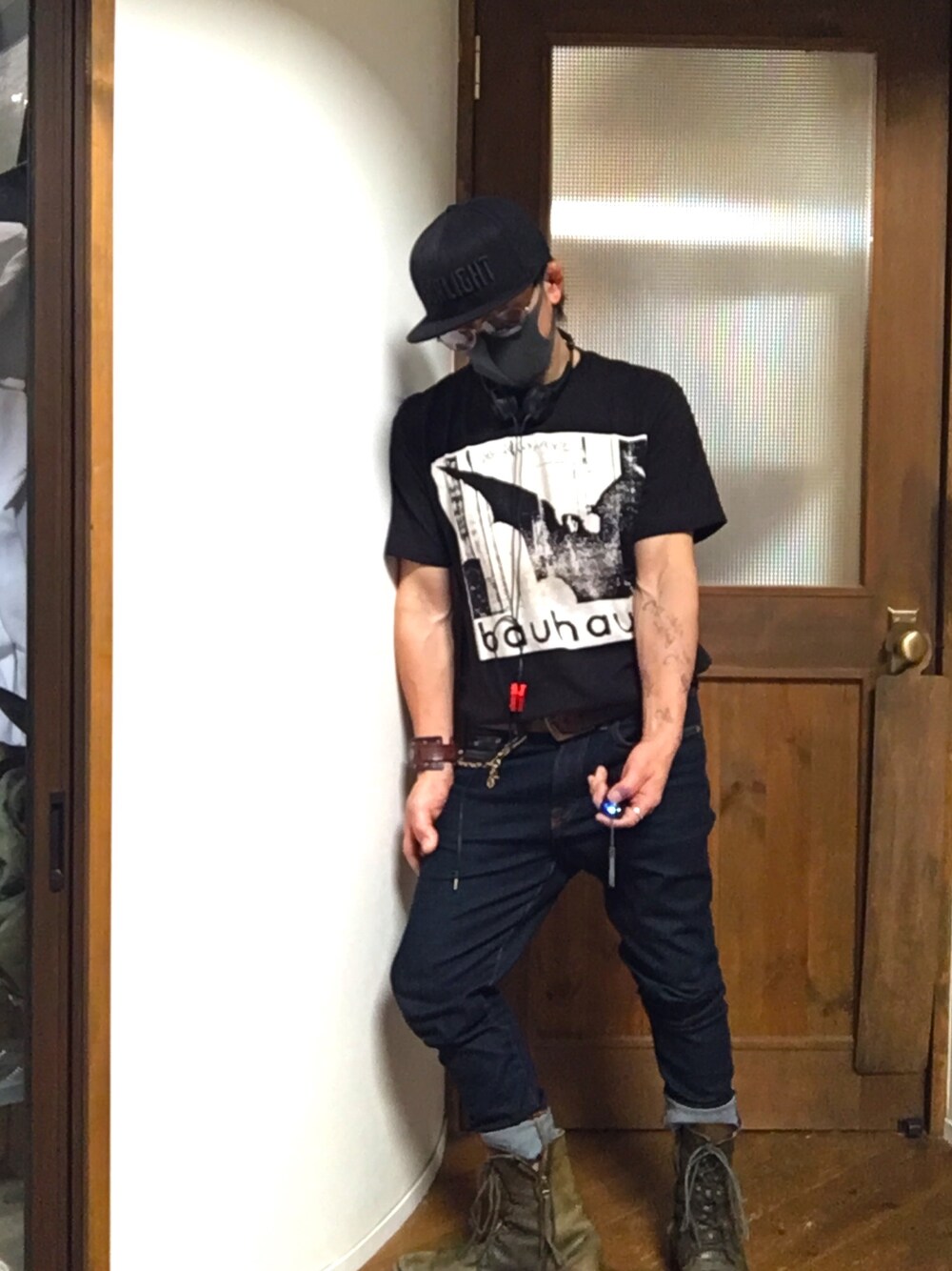 Tは、イギリスのバンドbauhaus バックにはandeadの文字。渋