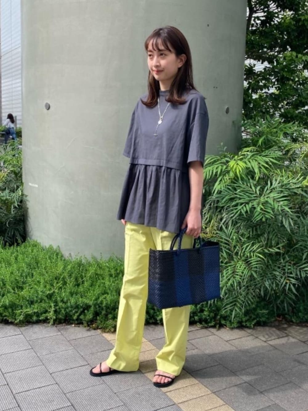 ●身長:164cm ●普段サイズ:トップス38/ボトムス38/シューズ24.5cm 【サイズ感】 トップス:ゆったりで、腰回り隠れる着丈 ボトムス:トップスインもできるウエストサイズ 【着心地】 トップスもボトムスもサラッとした肌触り。 【コーディネートポイント】 ペプラムが特徴のトップスにストレートパンツを合わせてバランスを取ったコーディネートです。ネックレスやバッグでアクセントをつけました。