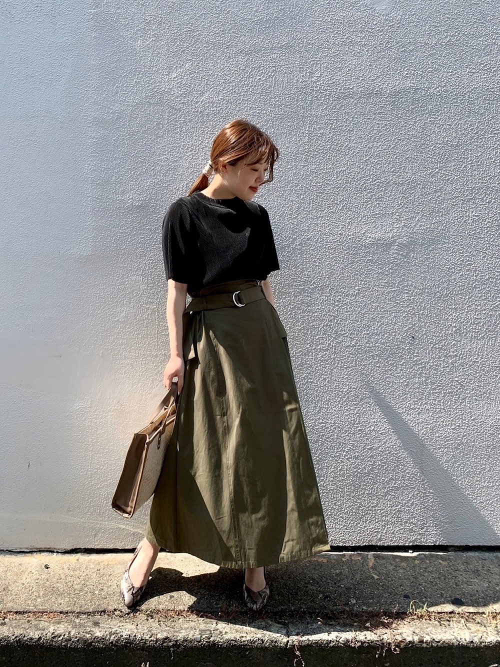 うめのTシャツ/カットソー「プリーツハイネック5分袖プルオーバー」を使ったコーディネート