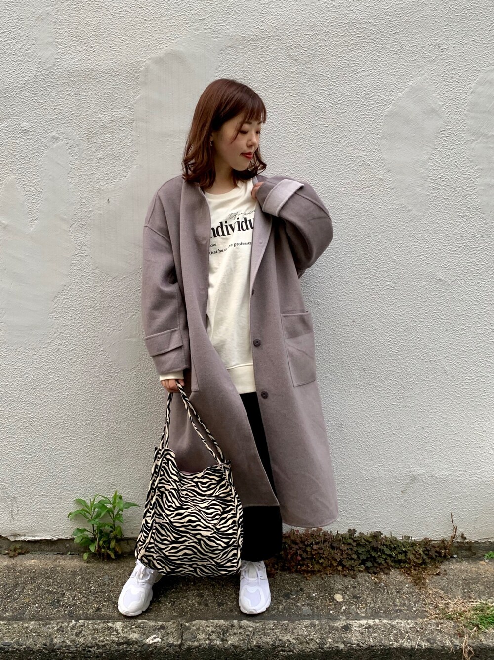 カジュアルなパーカーにレザーのタイトスカートを合わせてモードな要素をプラスさせました 小物のゼブラ柄がコーディネートのアクセントに