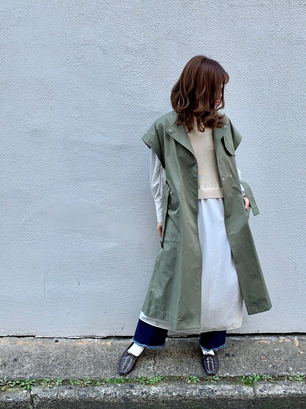 うめのシャツワンピース「ニット切替シャツワンピース」を使ったコーディネート