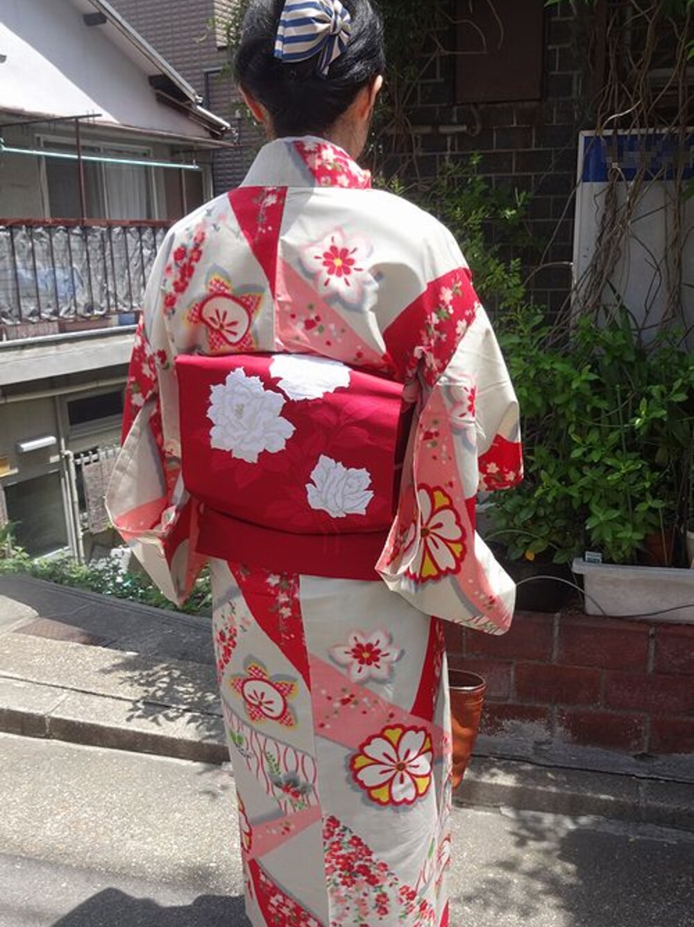 安見梅子の和装小物「赤い帯」を使ったコーディネート