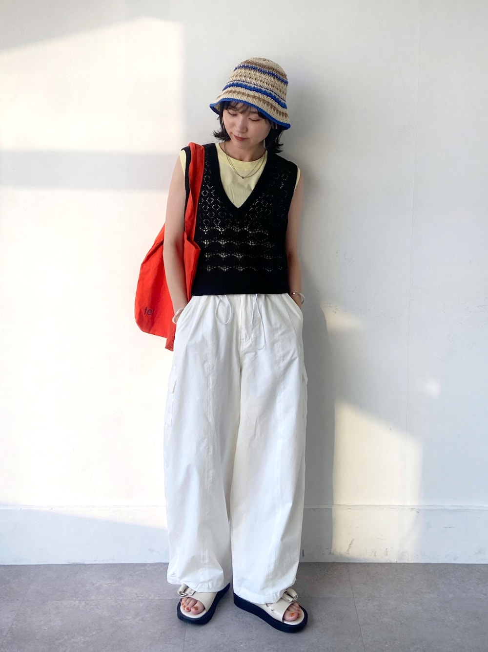 サマーニットベストをノースリーに 合わせるのがマイブームです🪐 ホワイトじゃなく くすんだイエローTがまた可愛いです🍋  ̄ ̄ ̄ ̄ ̄ ̄ ̄ ̄ ̄ ̄ ̄ ̄ ̄ ̄ ̄ ̄ ̄ ̄ ̄ 個人Instagram ⇨ @xx_umichu FUDGE FREND⇨ @umi_fudge お問い合わせはインスタDMまで🎧🎧 ___________________