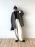 UMIのノーカラーコート「ノーカラーカットメルトンミドルコート」を使ったコーディネート
