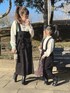 いつも閲覧頂きありがとうございます🙇♀️✨ モノトーンで親子リンクコーデ♡♥ ジャンパースカートにスウェットで 程よくカジュアル感を出してくれます♡