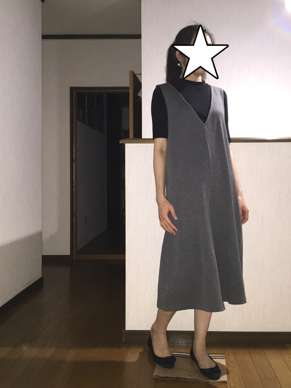 ラクチンコーデです。 ガバっとはけるサロペットにぺたんこ靴。 プープレのパンプスは何年か前からずっと履いてます。パッと履けてしかも私の足の形に合ってるので痛くならない唯一のパンプスかも笑 リボンも可愛くなりすぎない形でお気に入りです。