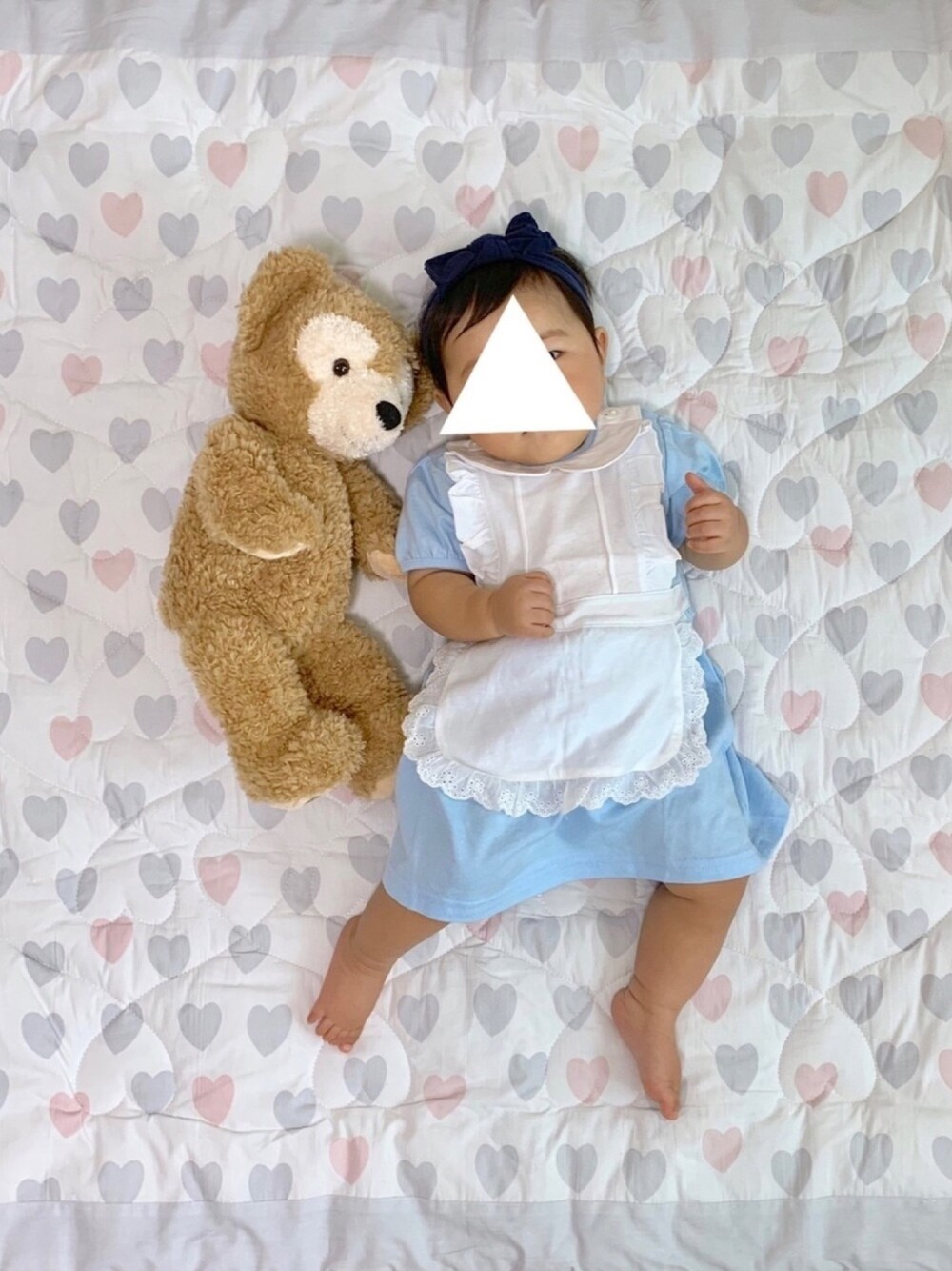 せっかくのハロウィンですので、唯一持ってるコス、アリスのエプロンドレスを着てみました。 機嫌悪すぎて髪ボサボサ… ※あまりにボサボサすぎたのでお昼寝後にメイン写真を撮り直しました😂