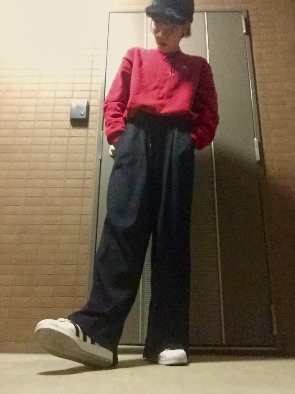 イイね!ありがとうございます‼︎ 今日もあったかい!ずーっと日向でぼぉーーーっとしたいぐらい気持ちい天気でしたな〜 先日、久っっしぶりにwegoで買ったリブパンツ‼︎ 履き良い!足長効果〜☝🏻️☝🏻☝🏻 上は、古着で買ったadidas! に合わせてスーパースター👟👟👟 たまにブランドを揃えると気分が上がる🙃