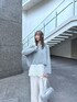 首元と袖が広がった女性らしいデザインのニット✨️気分に合わせてワンショルでもお使い頂けます! ダブルタックパンツはさらっと履きやすく、ウエストが詰められるデザインなので160cmですと36.38どちらでも選んで頂けます◎