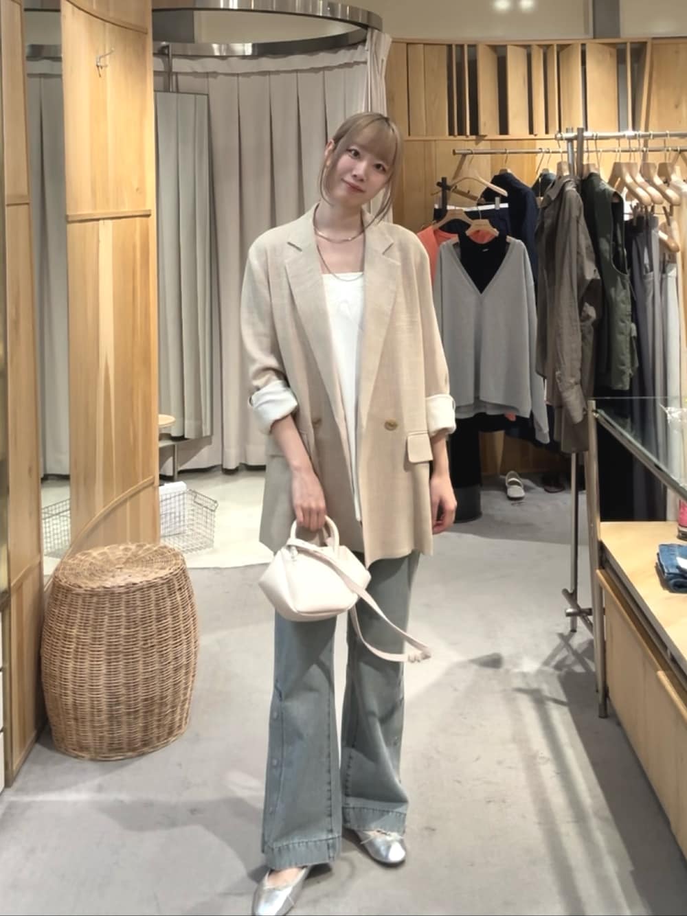 ジャケットと言ったらこれ!お家で手洗い洗濯 出来てシワになりにくい優れ物◎ オフィスカジュアルでもお使い頂けます✨ ボタンがアクセントのデニムはお好みで開けてフレアデザインに!