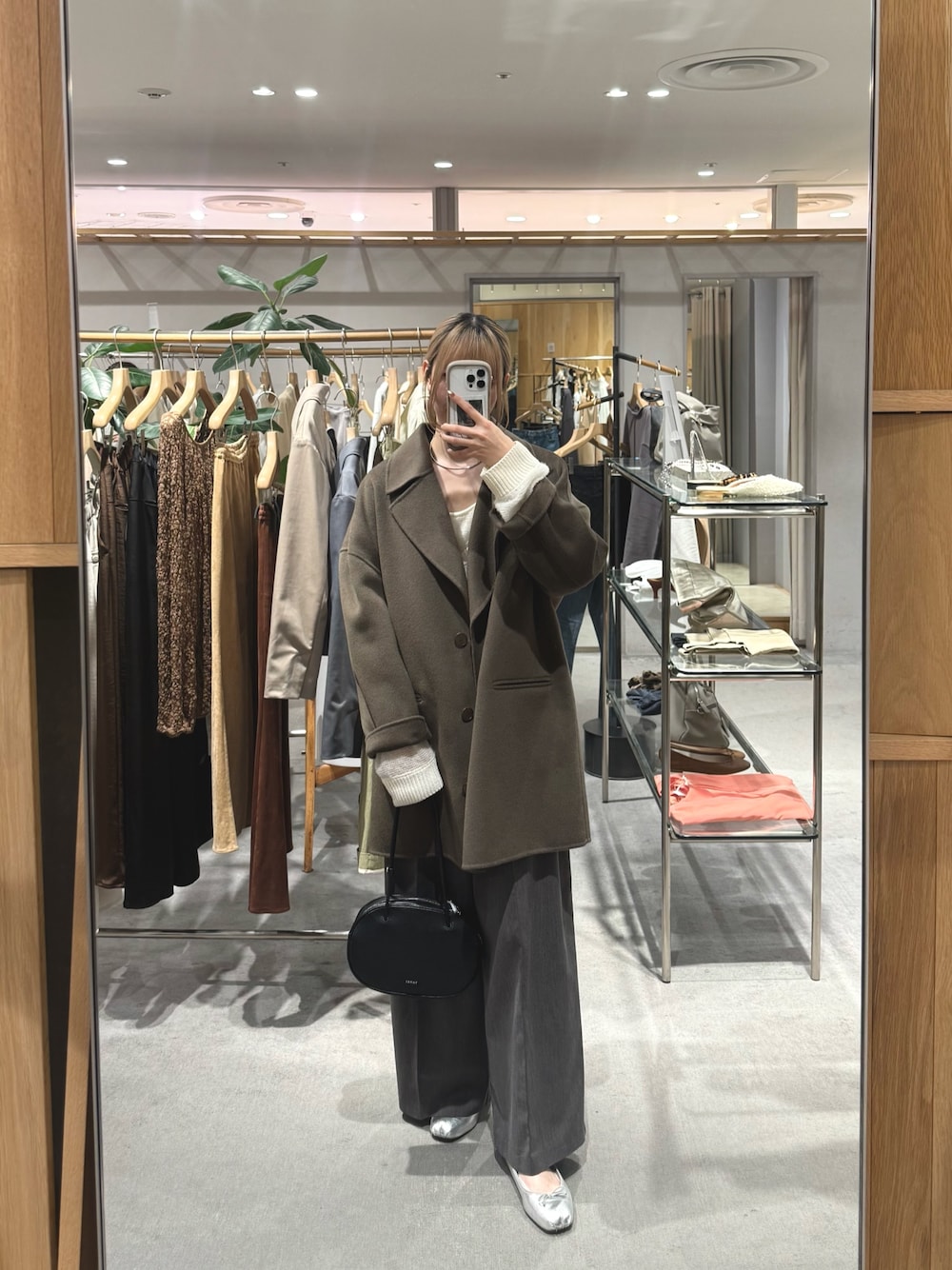 すっきりして見えるトレンドのミドル丈コート! 襟を立てても使えるのでマフラー要らず◎ スラックスとニットで合わせてカジュアルに!