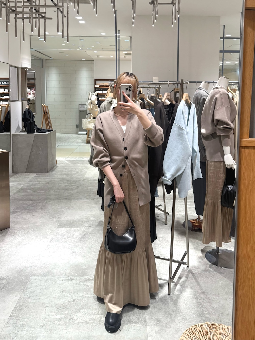 ウエストが締まったカーディガン!リブが入っているので着痩せ効果◎ プリーツスカートは伸縮性抜群✨プリーツデザインで腰周りもカバーされて安心! ベージュワントーンできれいめにまとめました!