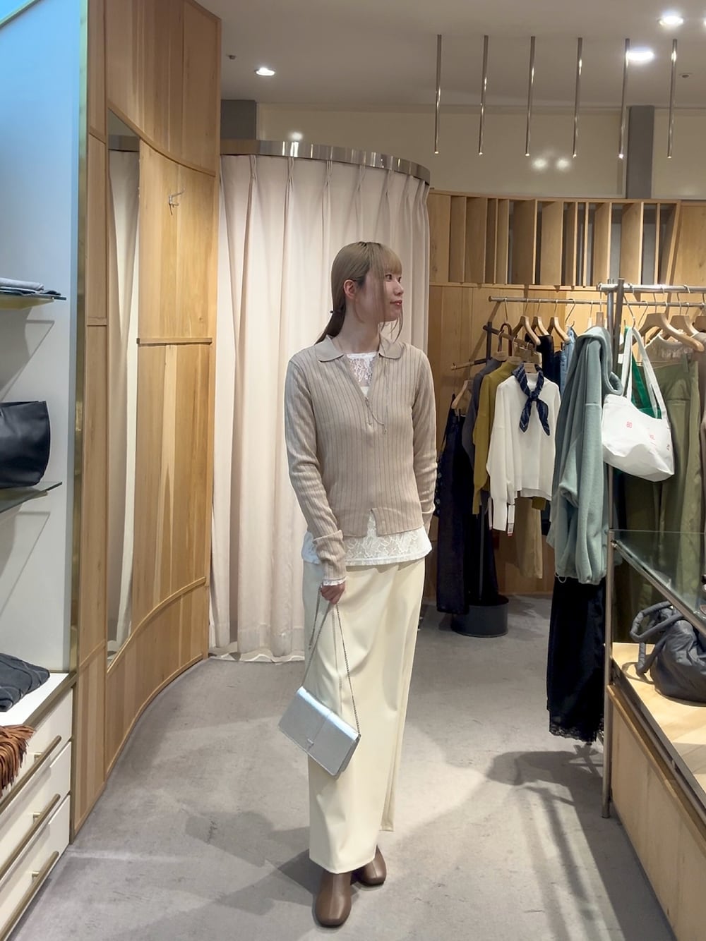 トップスは1枚でトレンドなハーフジップニット!すっきりリブ素材で着痩せ効果◎ レースのインナーと合わせて簡単レイヤードスタイルの完成✨ 1枚は持っておきたい!レザースカート✨ スリット+ストレッチが効いているので階段などもストレスフリーで◎ Iラインシルエットが着痩せ効果!