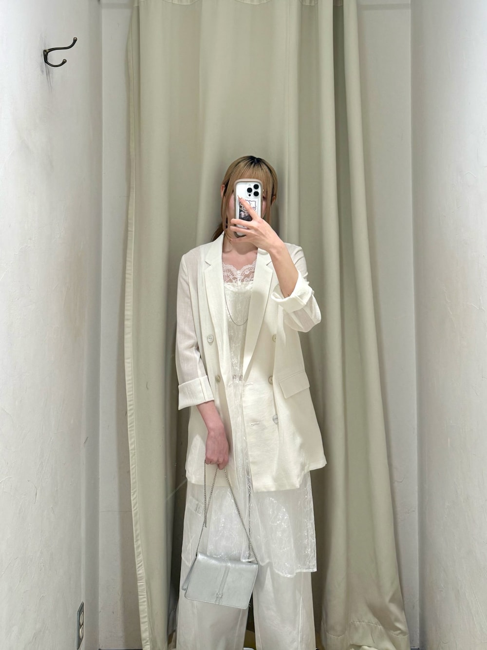 毎年大人気!シアージャケット✨ シワになりにくく洗える優れもの◎畳むと小さくなるので夏の羽織ものとして持ち運びにも便利◎ インナーには簡単にレイヤードコーデができるレースチュニック!細やかなレースで柔らか素材✨ ホワイトワントーンで春夏らしく合わせてみました!