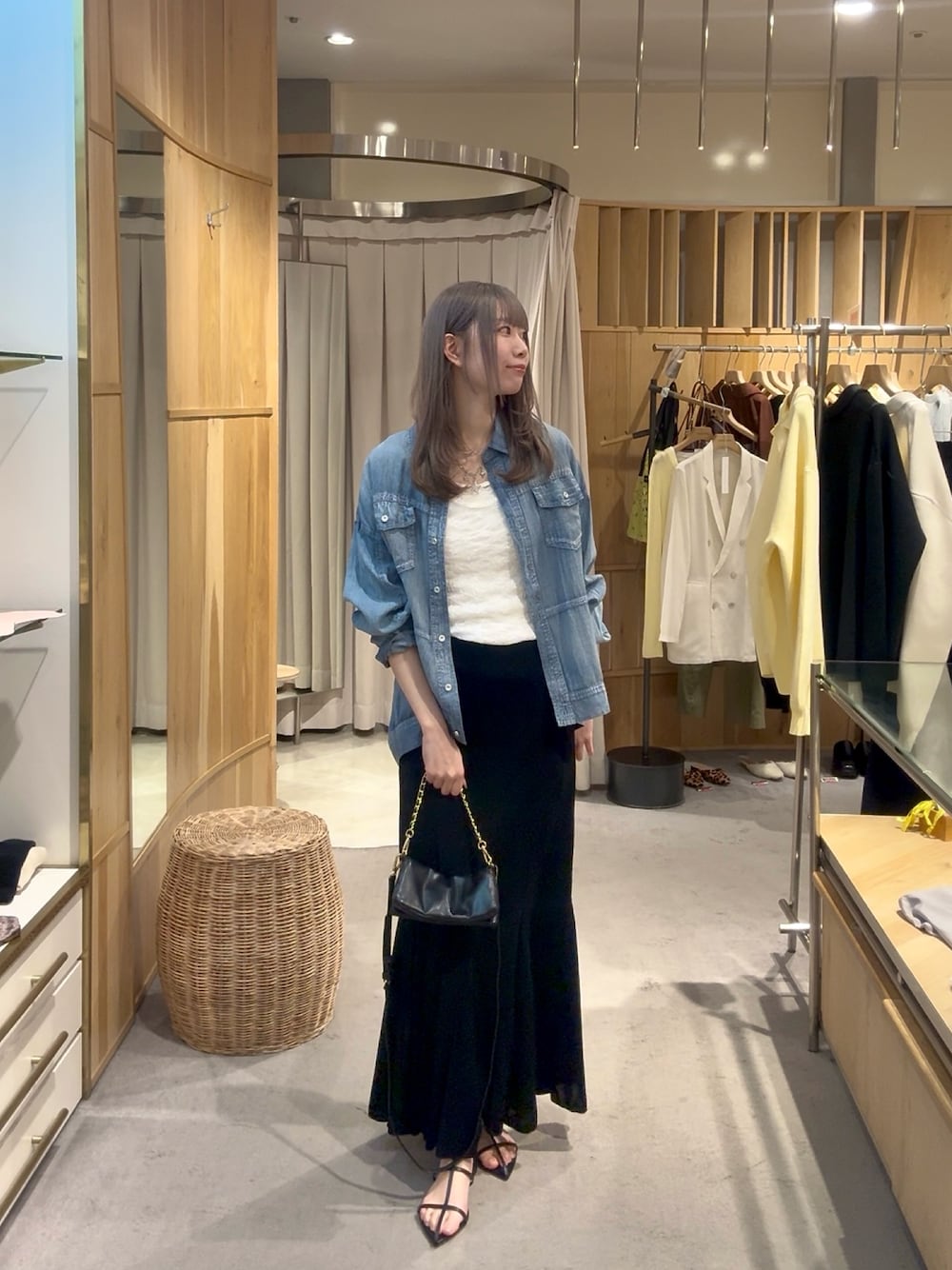 大人気の透けるデニムシャツ!軽くて薄くて夏までお使いいただけます✨️レースアイテムをレイヤードして抜け感up! インナーはレースレイヤードカットソー! 1枚でレイヤードスタイルの完成✨袖、裾が長めなのでチラ見せしても◎ スカートは透け感が可愛いフレアスカート! 動いた時のひらひらシルエットが素敵でお気に入り!